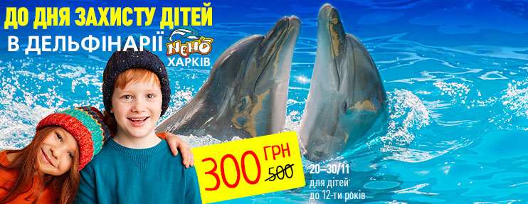 З 20 по 30 листопада діє спеціальна акція — квиток у дельфінарій лише за 300 грн (замість 500 грн) для дітей до 12 років.